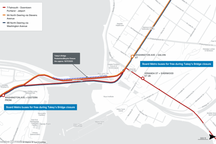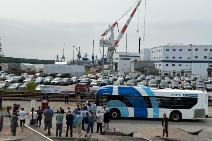 Normally, electrician Keith Devine would be in the BIW 500, jumping on a shuttle bus to his truck, then racing home to Yarmouth. But today, he’s chilling in the back of a blue Metro BREEZ bus that he caught at 3:40 p.m., right across the street from the shipyard.